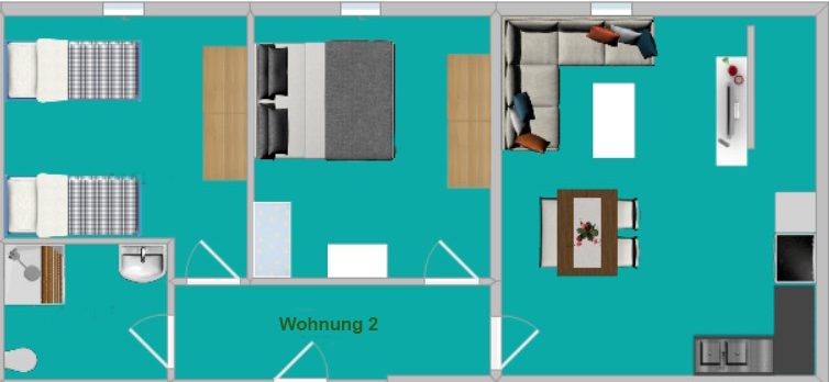 Im Obergeschoss des Familienzentrum Torgelow befinden sich zwei separate Wohnungen, eine Waschküche und eine Gemeinschaftsküche/-raum. Über einen Flur sind die einzelnen Einheiten erreichbar. Da der Eingang nur über eine Treppe erreichbar ist, können wir keine Barrierefreiheit anbieten. Die Wohnungen sind teilmöbliert.